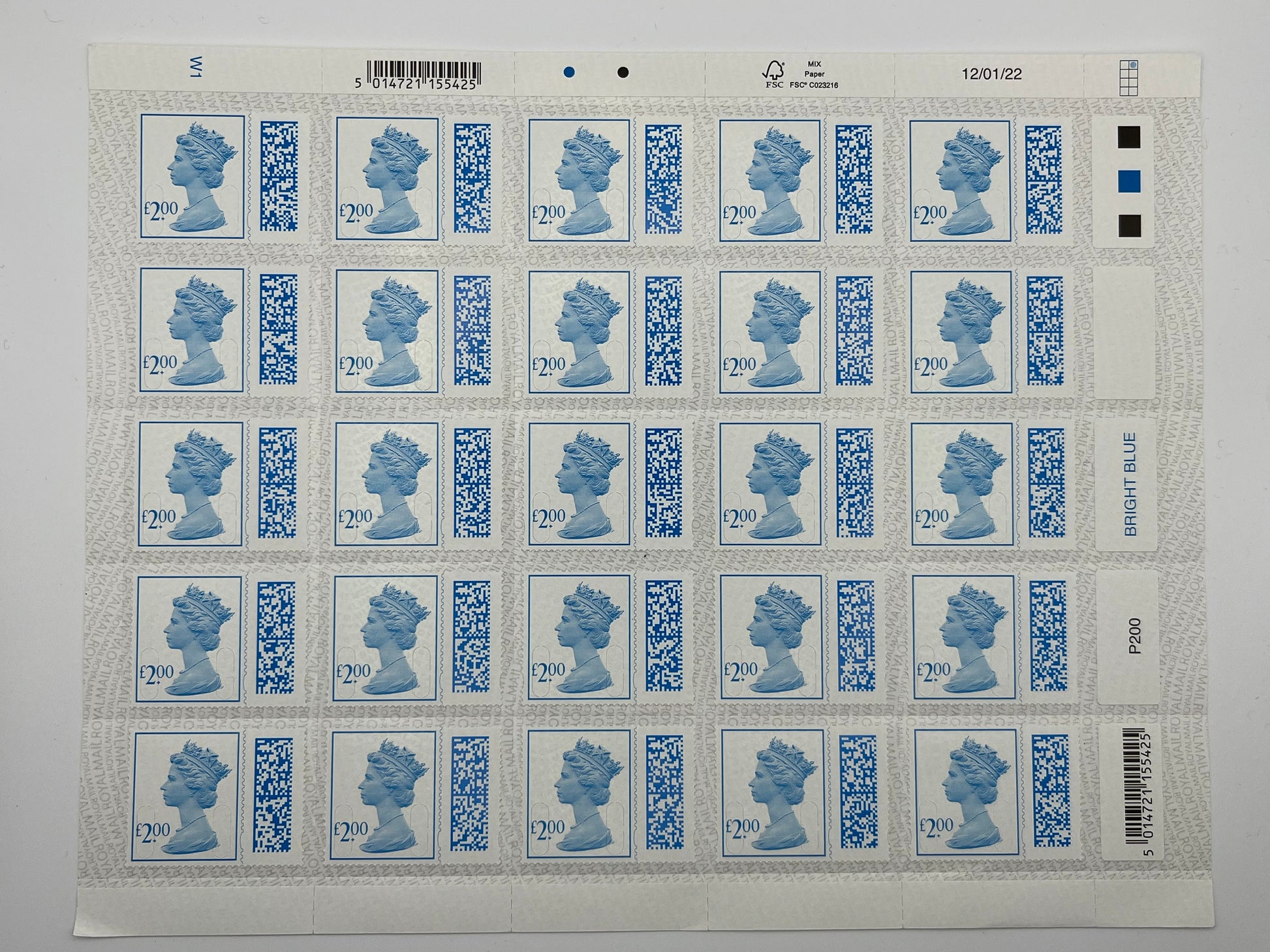 25 x £2 Self Adhesive Barcoded Stamps For Postage FV £50